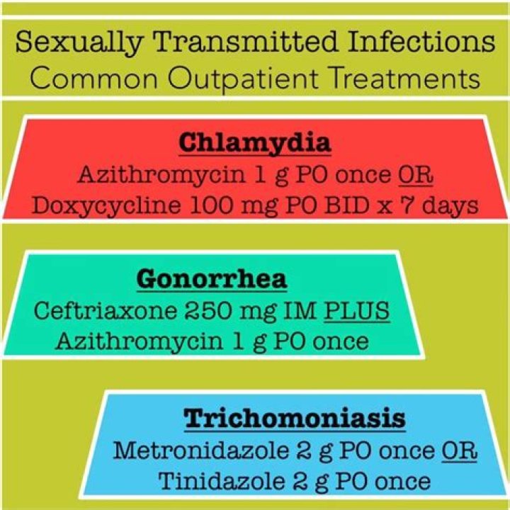 - Ceftriaxone with doxycycline or azithromycin for Gonorrhea and chlamydia.